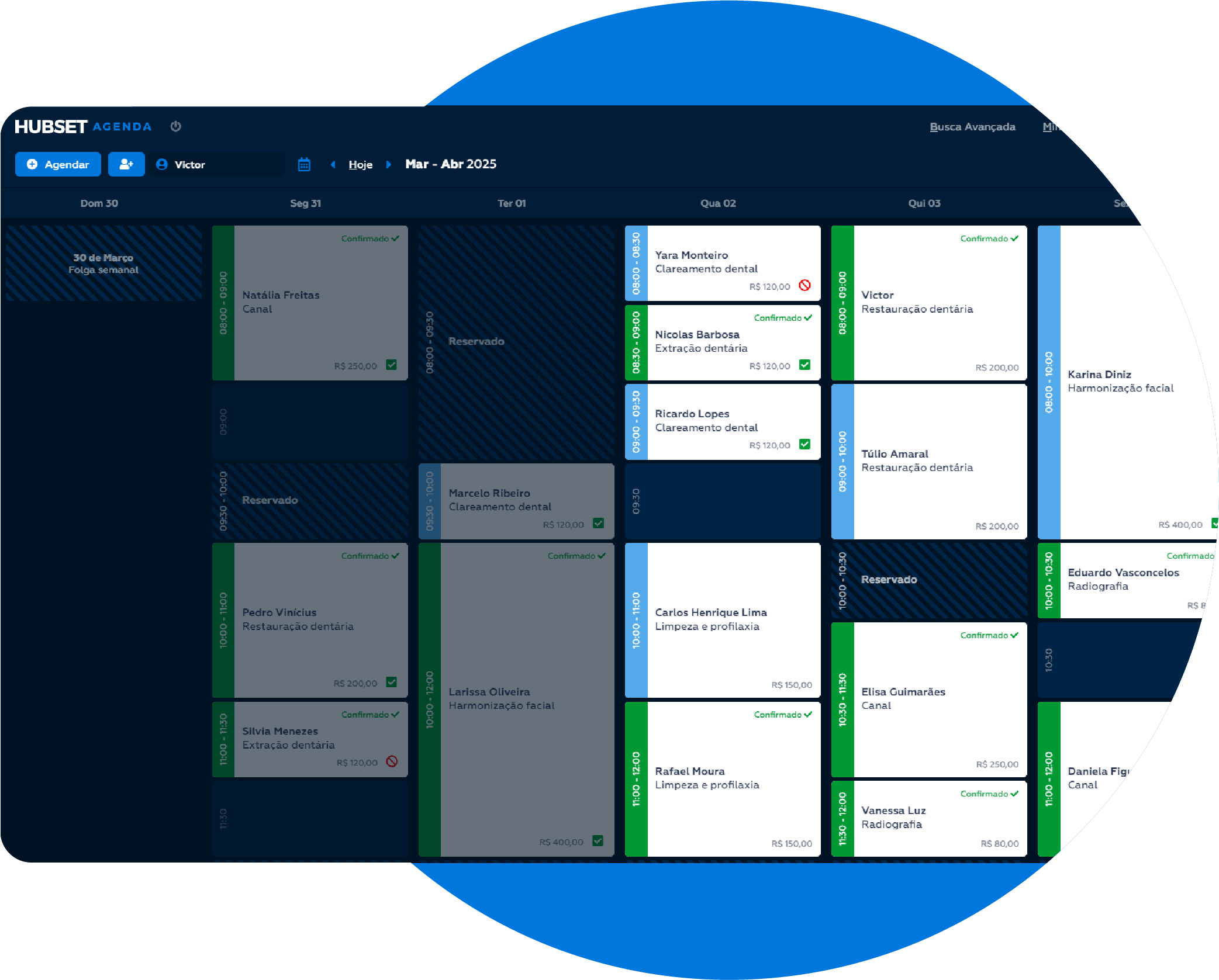 Com o tema escuro, além de descansar a vista em uso contínuo do programa, você também economiza energia, além e ter muito mais estilo e facilitar a visualização dos agendamentos.